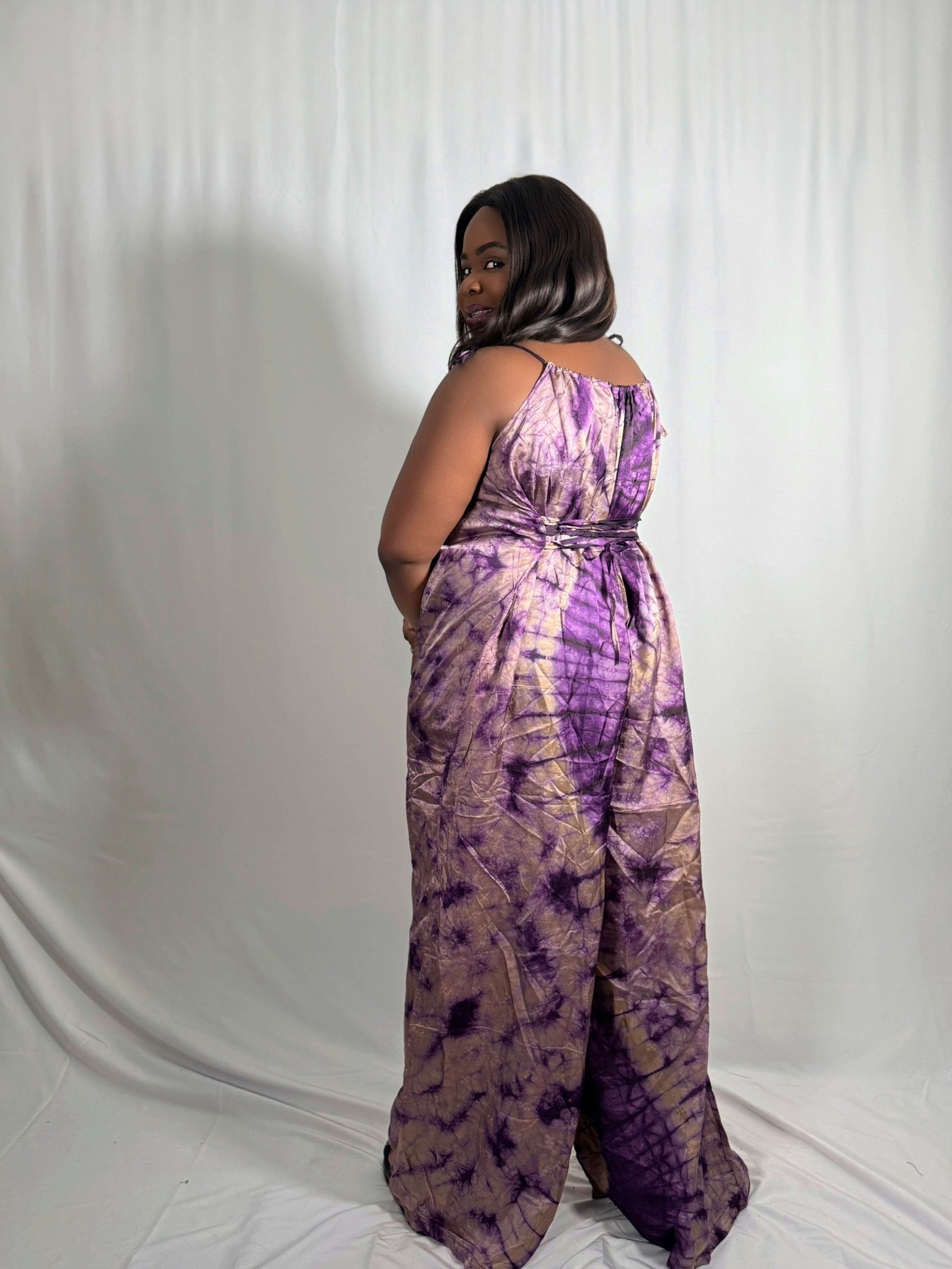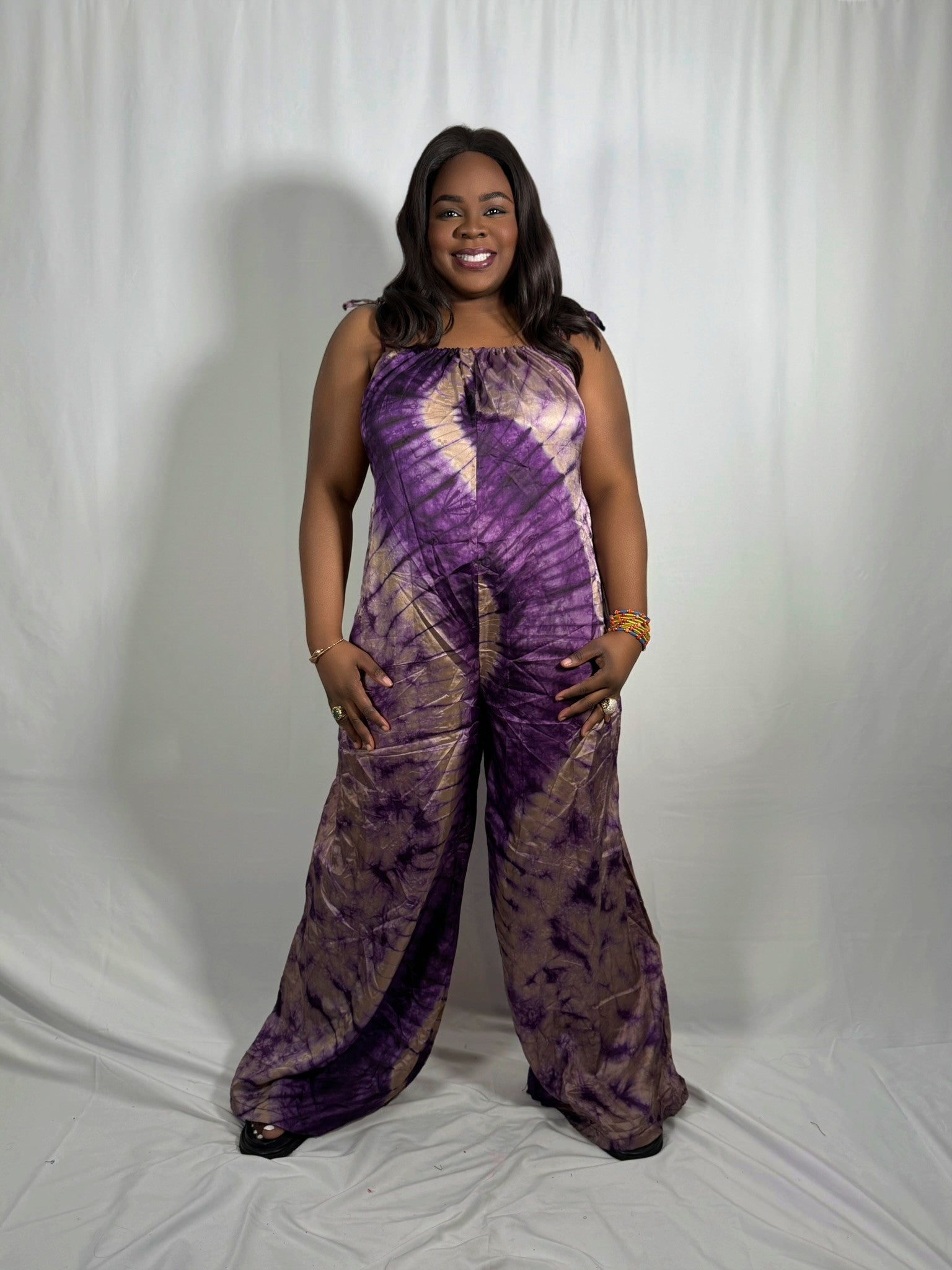Step into effortless style with our Adire Rayon Jumpsuit, a free-flowing, wide-leg piece handcrafted from lightweight, breathable rayon fabric and dyed using traditional Adire tie-dye techniques. With its relaxed fit, flattering gathered neckline, and adjustable tie-straps, this jumpsuit was made for movement, comfort, and serious style points.