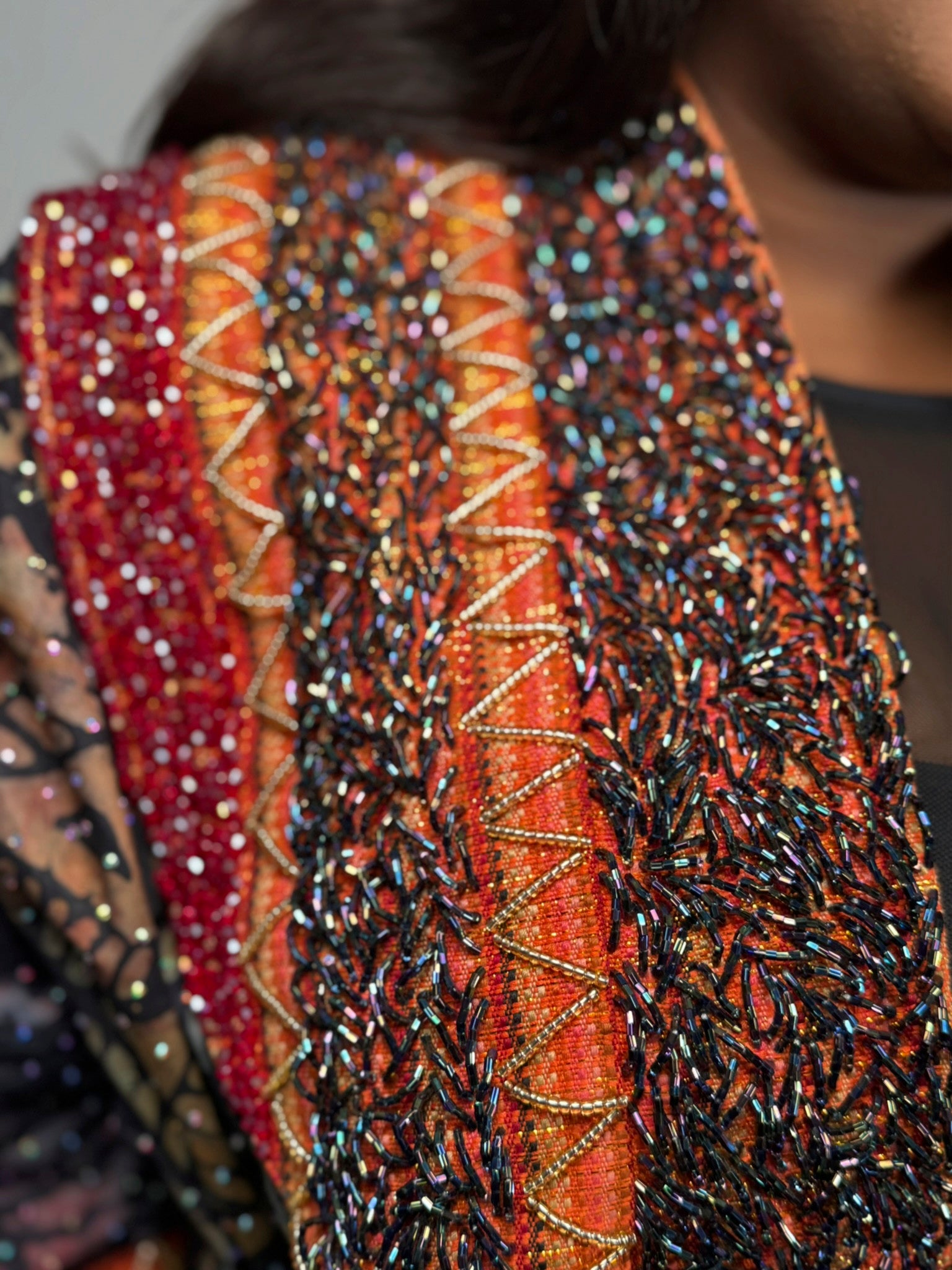 Handcrafted for the bold, modern woman who celebrates heritage with high fashion energy, this piece is perfect for cultural events, red carpet moments, and unforgettable entrances.