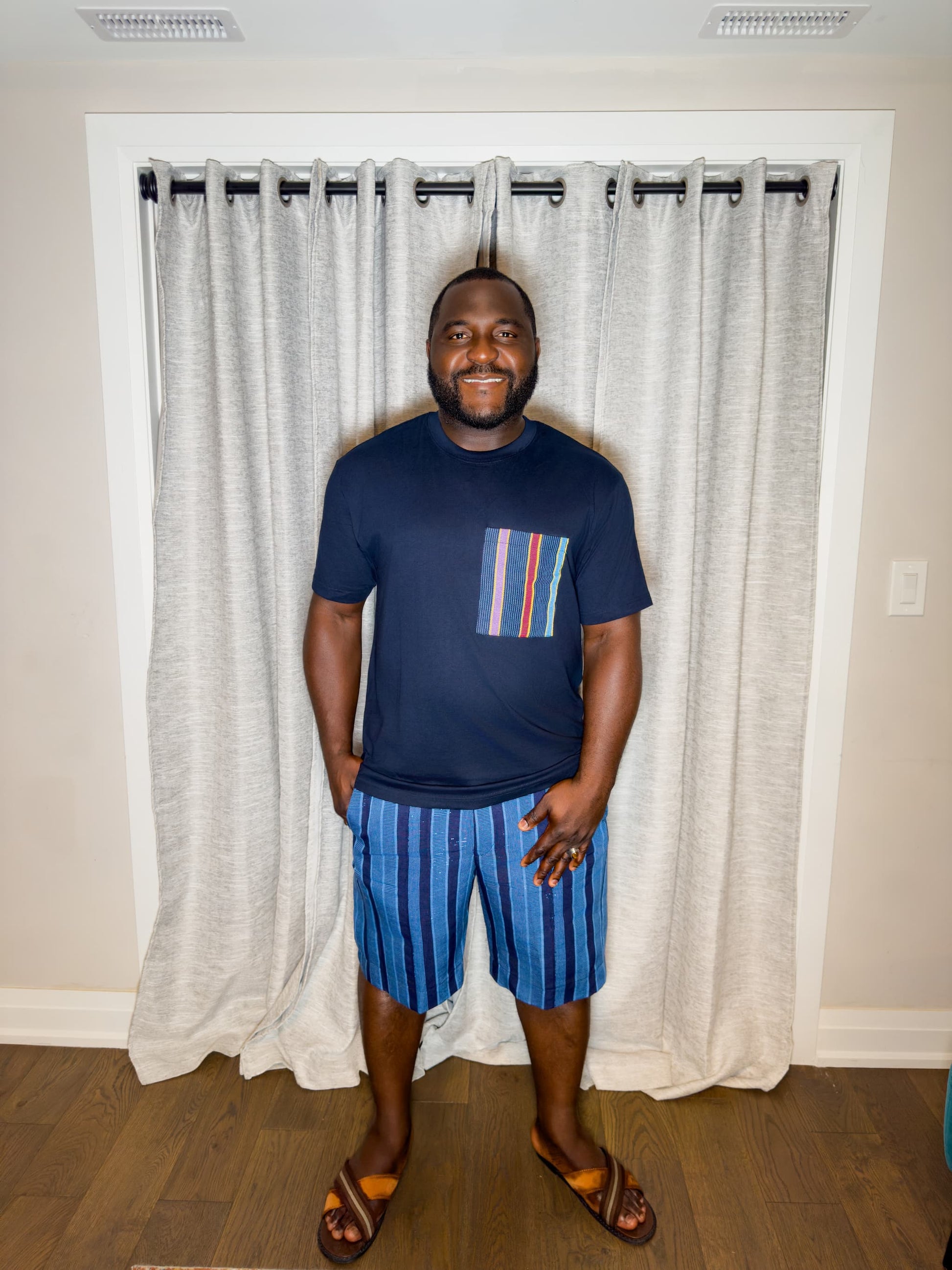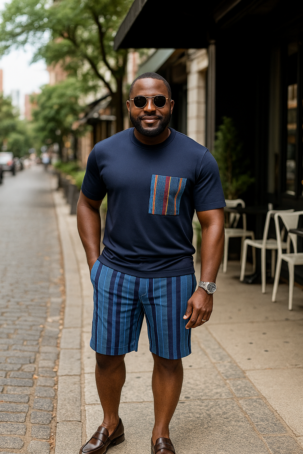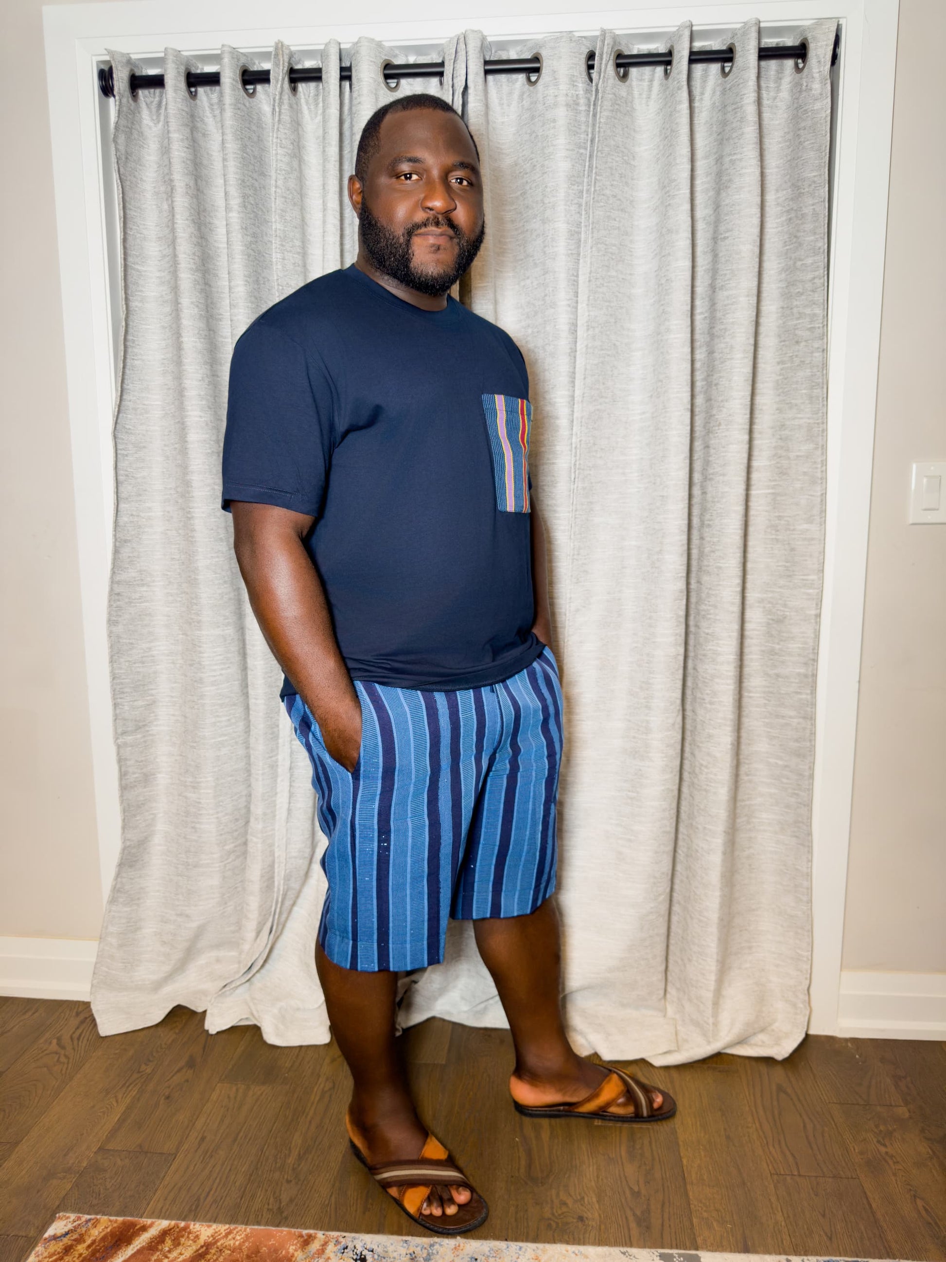 Pair these shorts with a neutral tee, a linen button-down, or the matching Asooke pocket tee for a cohesive Afro-urban vibe. Add leather sandals or sneakers to finish the look.