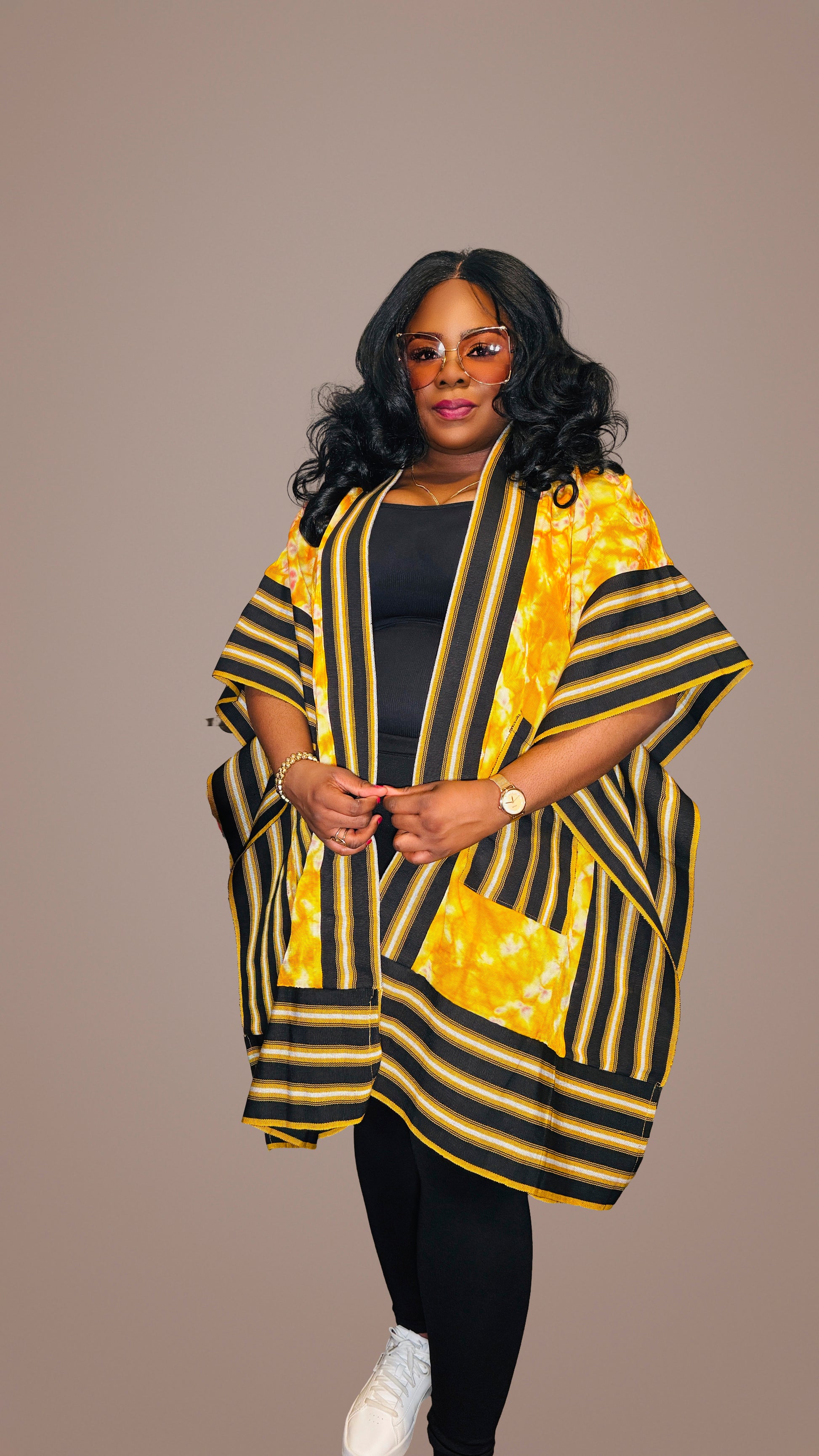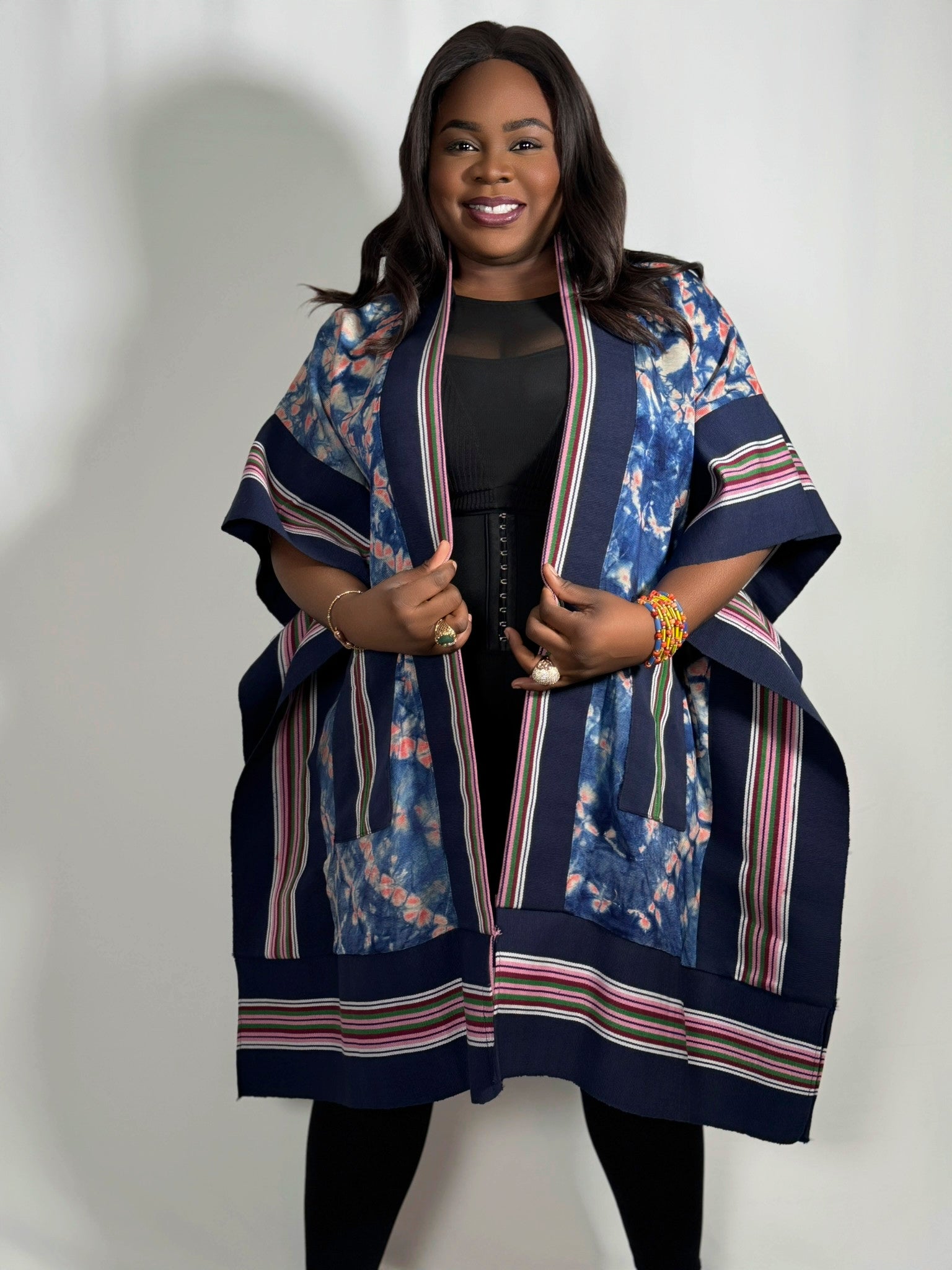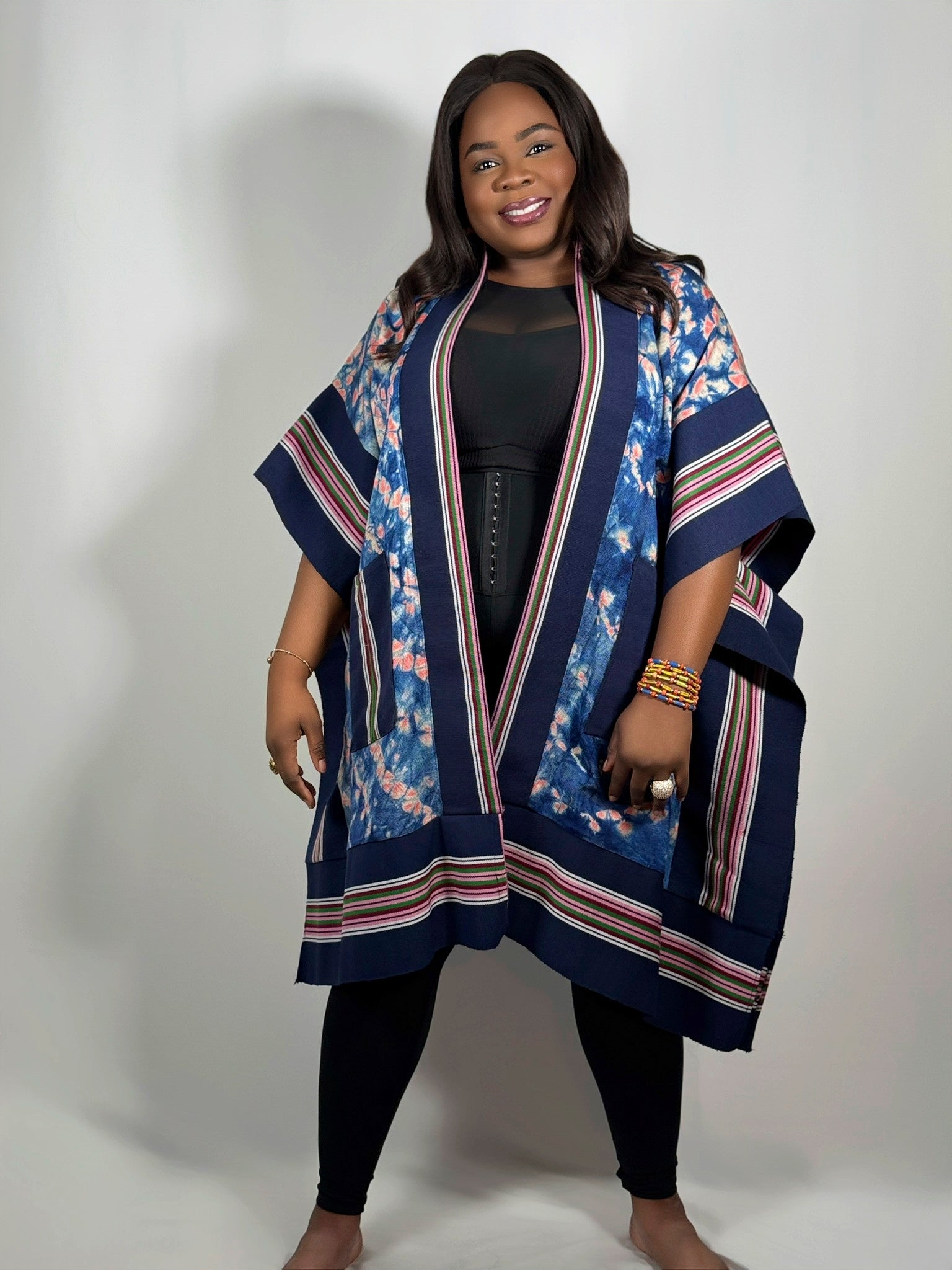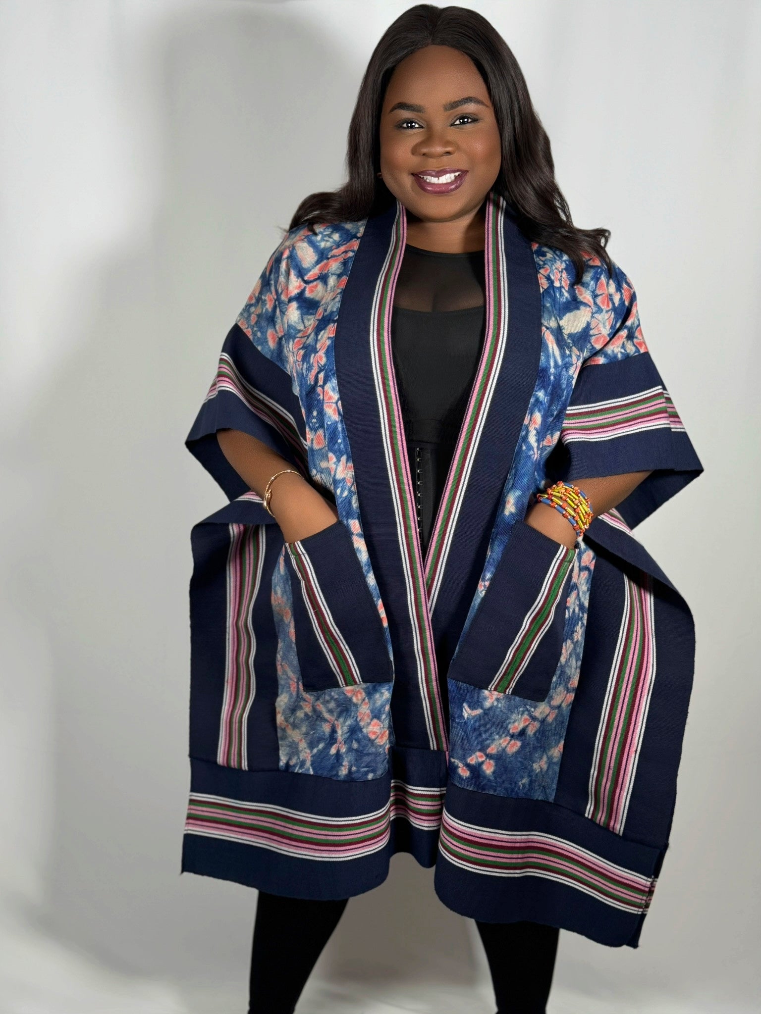 Where heritage meets contemporary cool—introducing the Adire & Aso-Oke Kimono Jacket, This bold layering piece is handcrafted using two iconic Nigerian textiles: the hand-dyed vibrance of Adire and the rich, woven texture of Aso-Oke. The result? A powerfully unique jacket that drapes effortlessly while making a bold cultural statement.