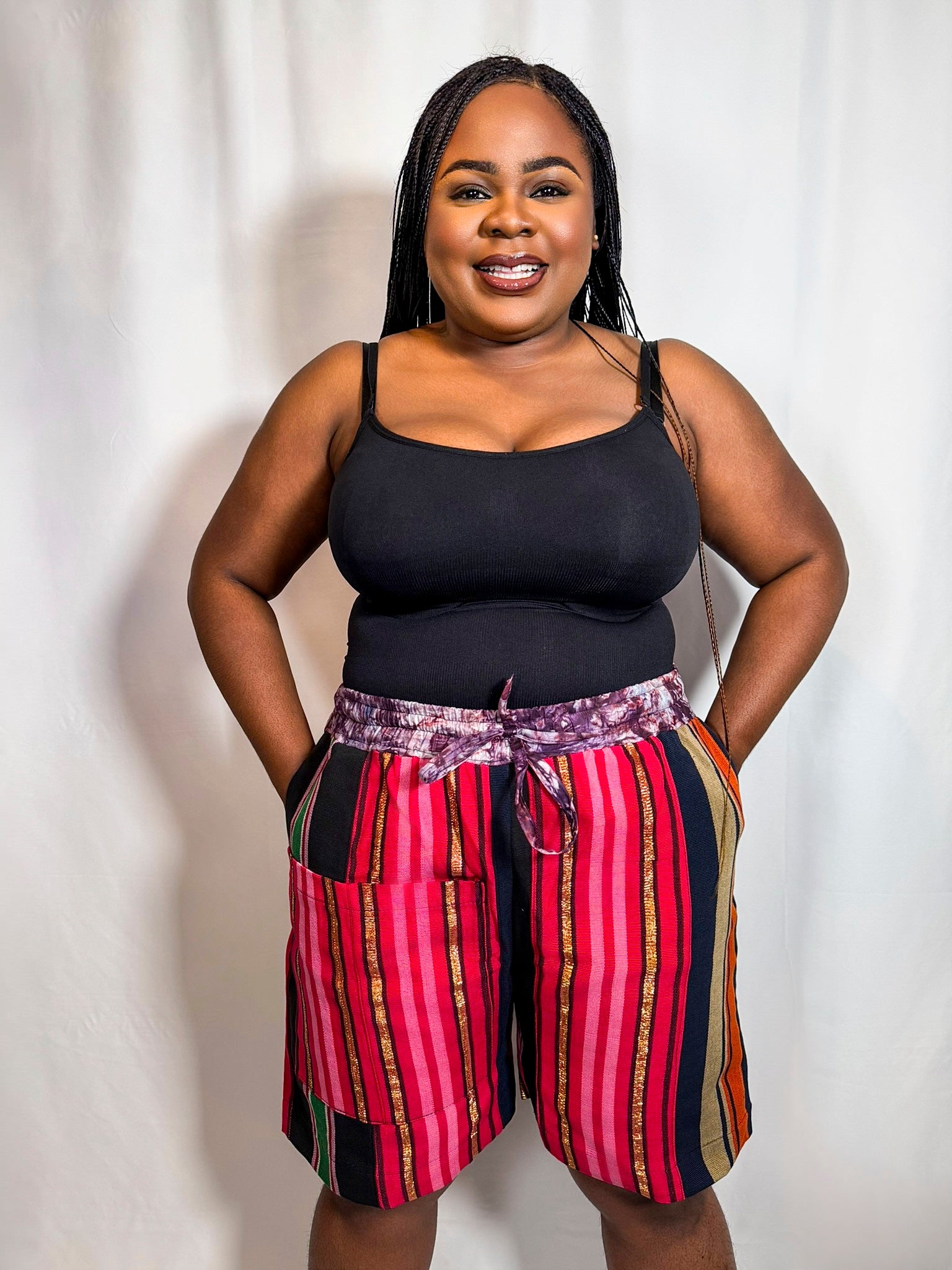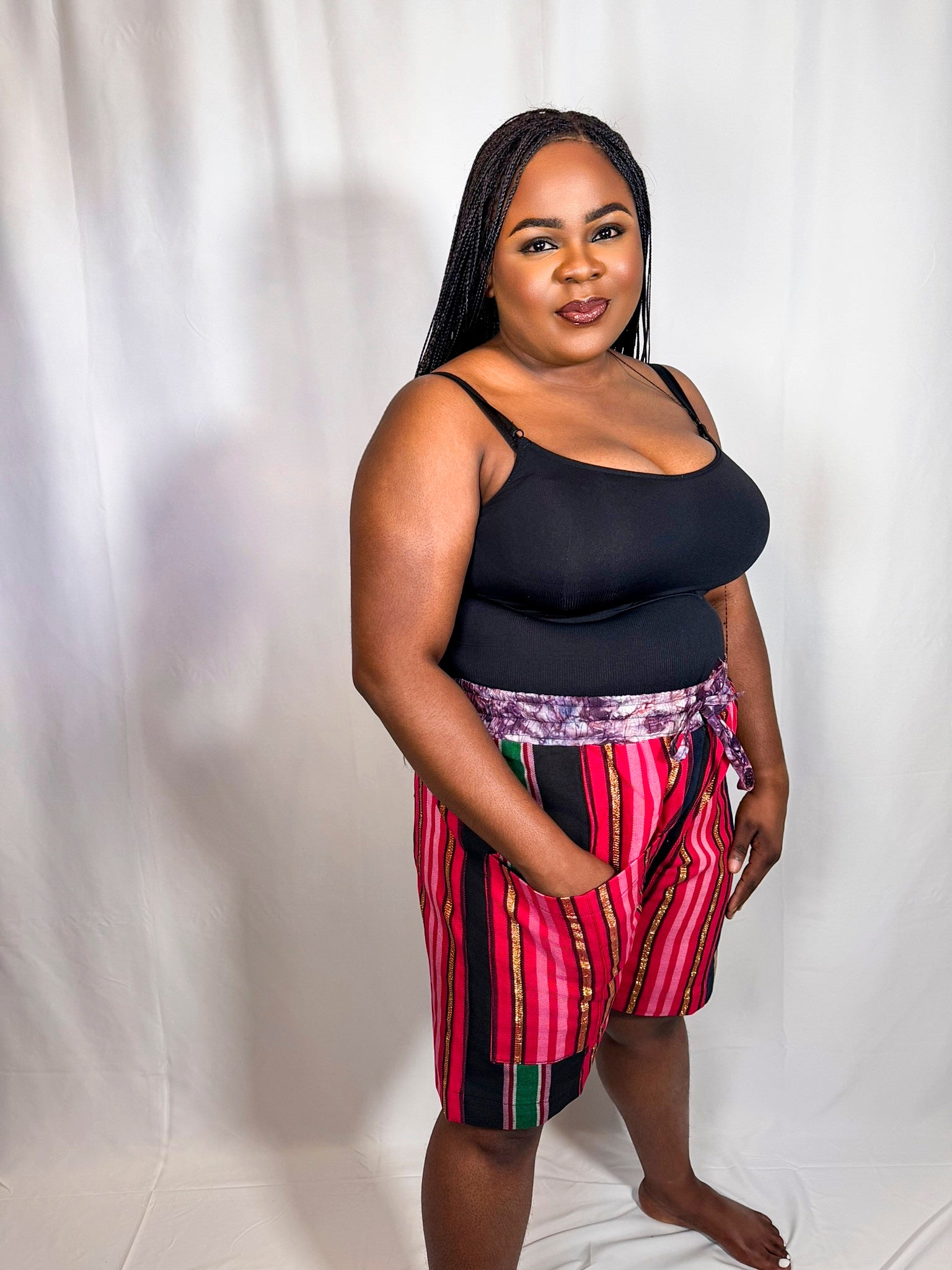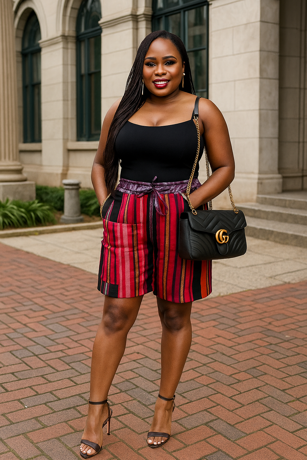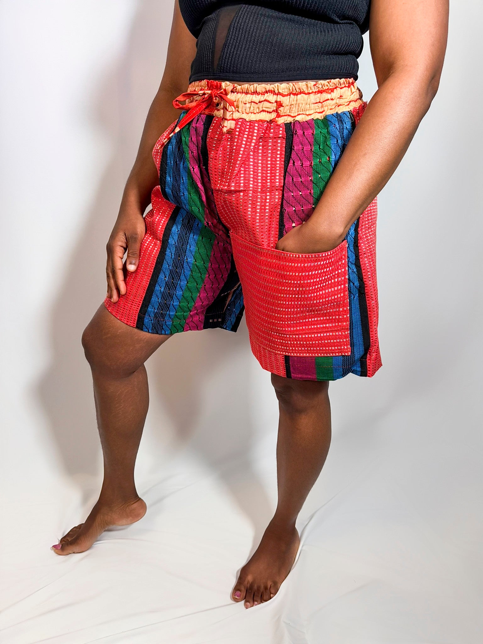 Add a playful punch to your summer wardrobe with our Multicoloured Aso-Oke High-Waist Shorts, thoughtfully designed for the modern woman who embraces culture with confidence. Made from handwoven Nigerian Aso-Oke fabric, these shorts blend traditional heritage with a contemporary fit that flatters all body types.