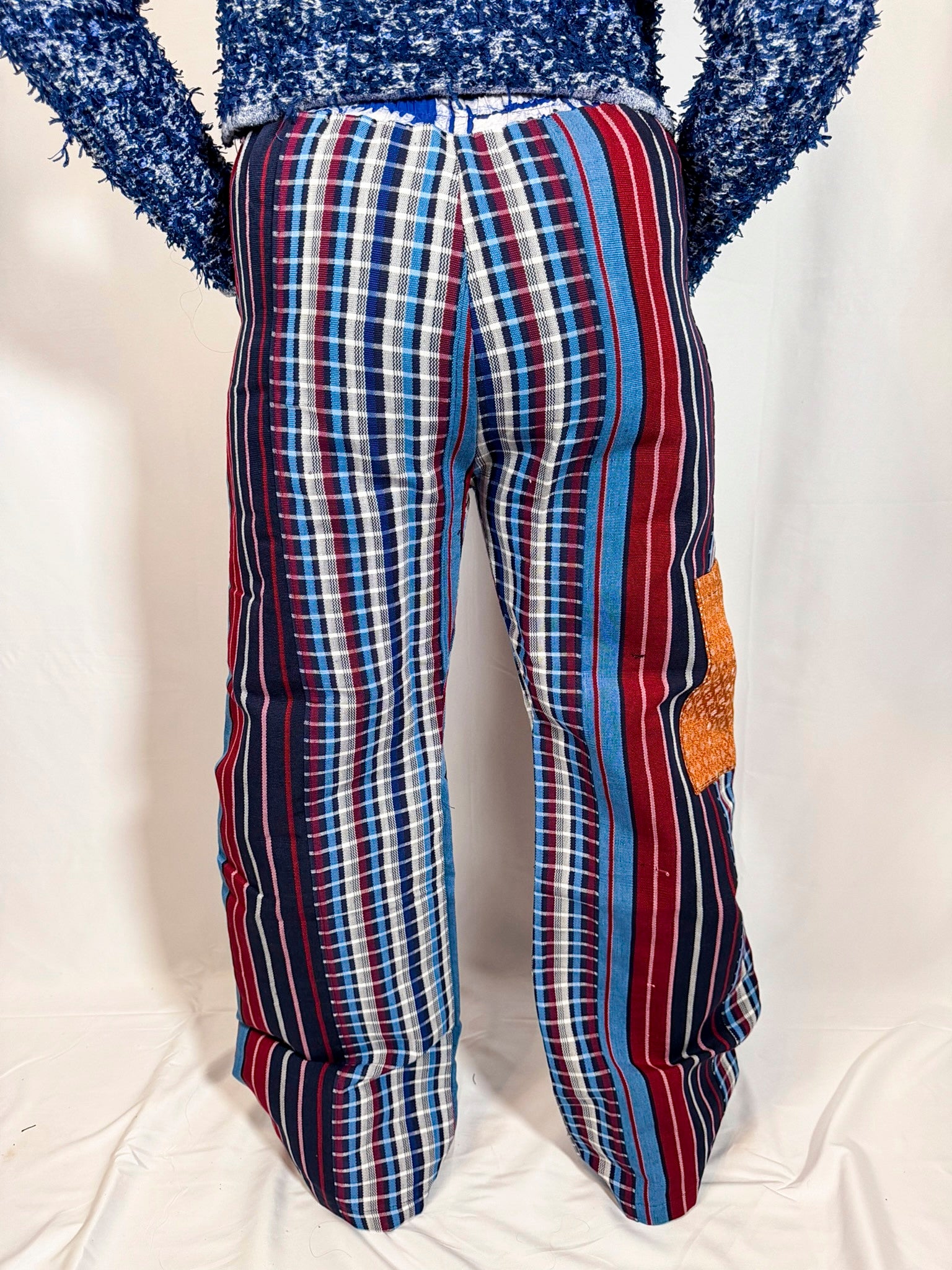 Elevate your everyday wardrobe with our Multicoloured Aso-Oke Wide Leg Pants, a bold celebration of culture, craftsmanship, and comfort. Handmade from authentic, handwoven Nigerian Aso-Oke fabric, this piece is where traditional artistry meets modern street style. Designed for the confident woman who’s not afraid to turn heads, each pant is uniquely patchworked with vibrant colors, textures, and patterns – making every pair one-of-a-kind.