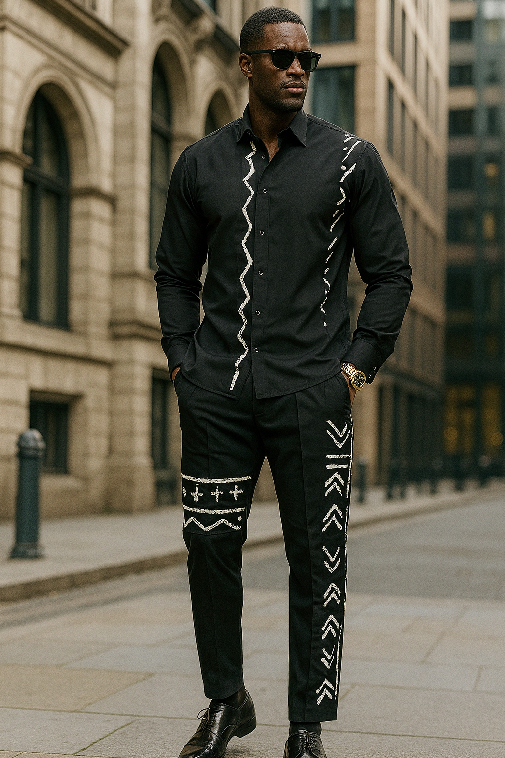 Pair with leather loafers and minimal jewelry for a sharp, elevated finish. Want a bolder take? Add a Fedora or sunglasses for a modern Afrocentric edge.