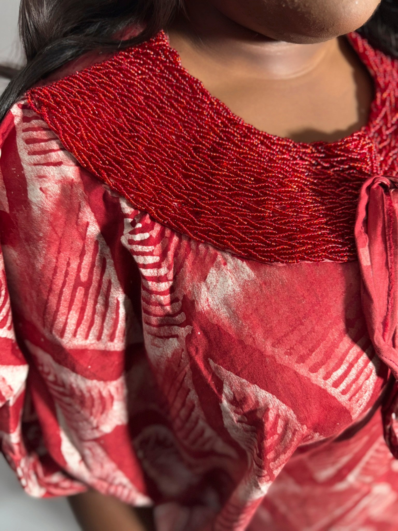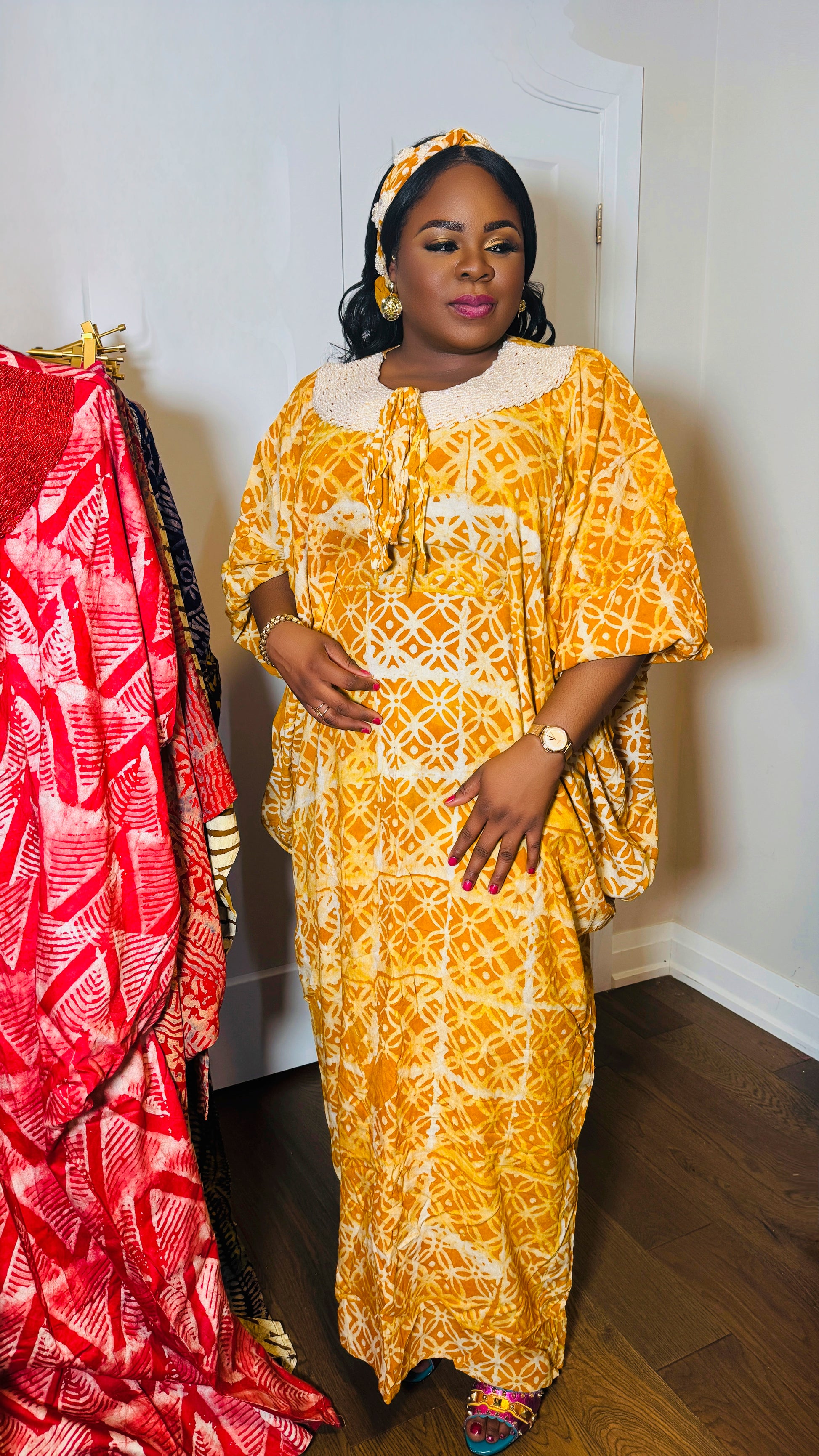 Step into timeless elegance with our Adire Bubu featuring a unique capelike embellished neckline, designed to make every queen feel regal. This free-flowing piece fuses traditional Adire artistry with a modern twist—highlighted by a delicate embellishes cape neckline that drapes effortlessly over the shoulders.