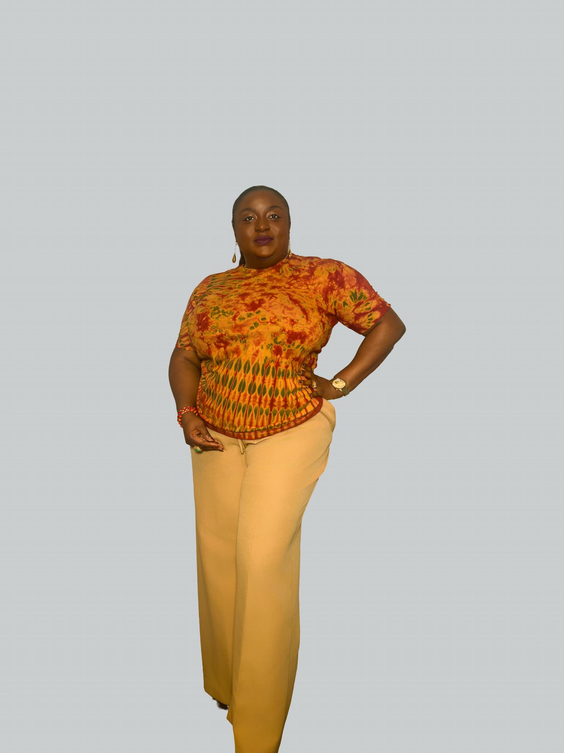 Pair with cream or beige wide-leg pants (as shown) for a chic Afro-boho look, or tuck into a denim skirt for casual days. Add beaded accessories for a cultural twist.