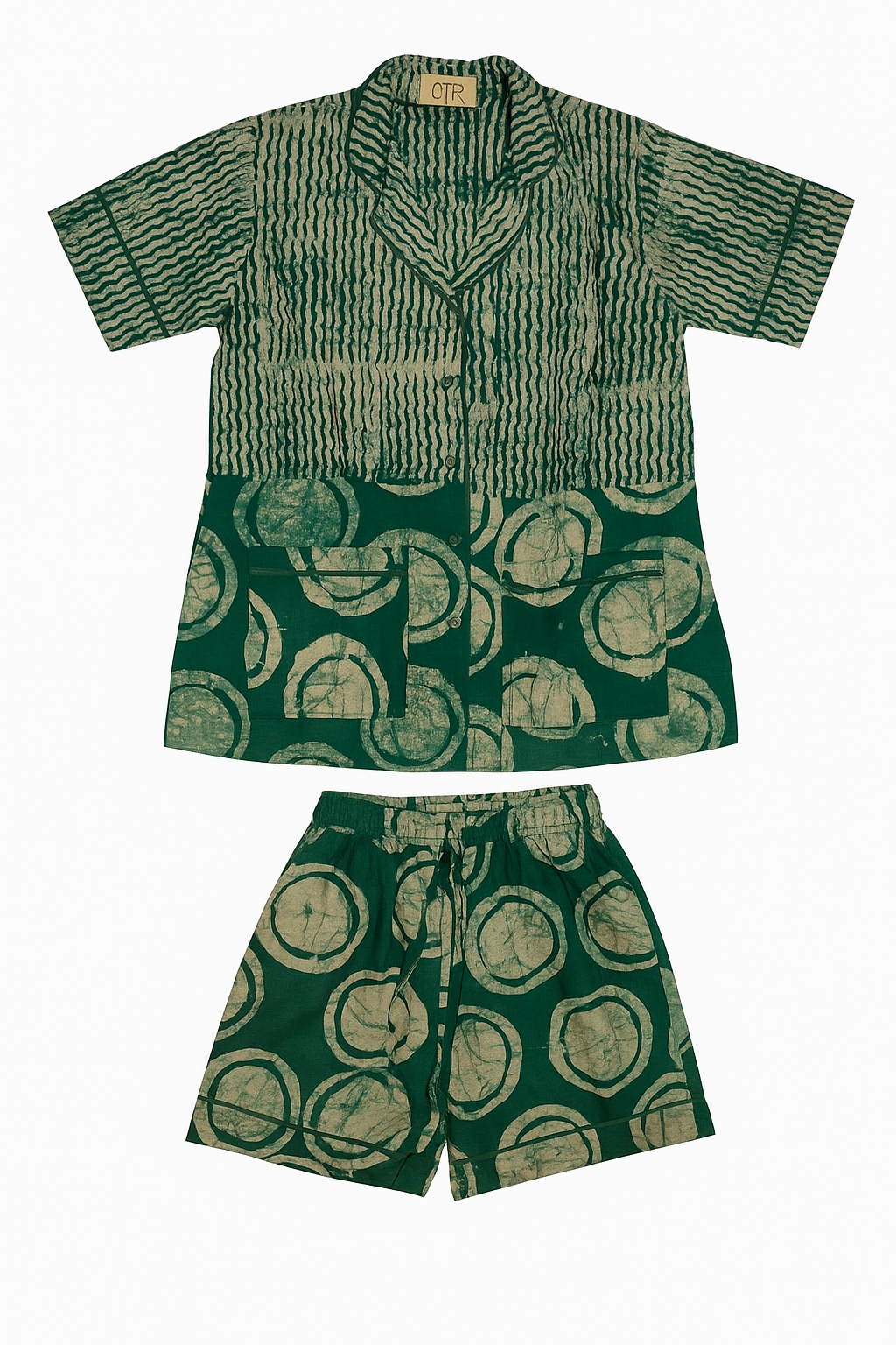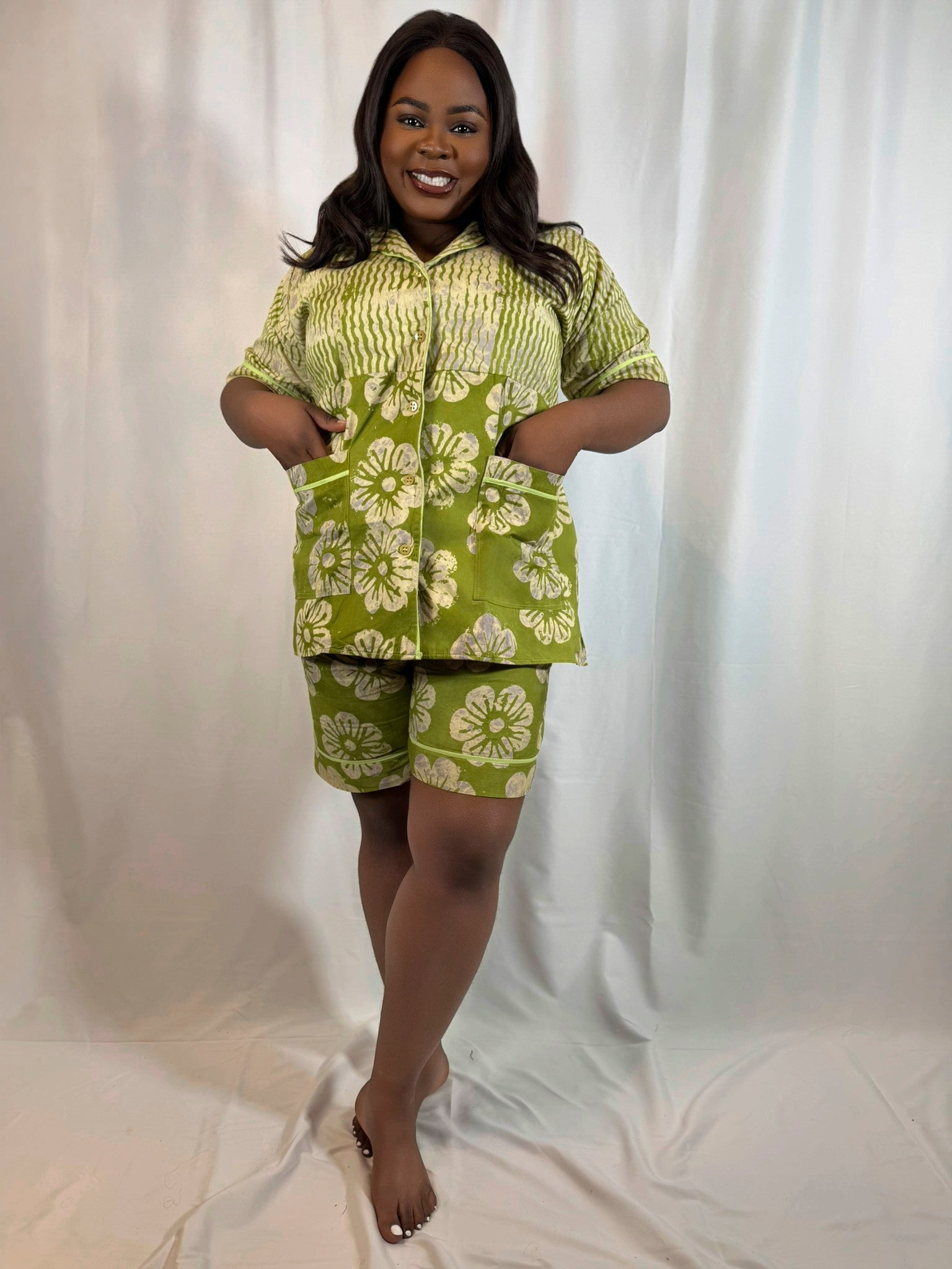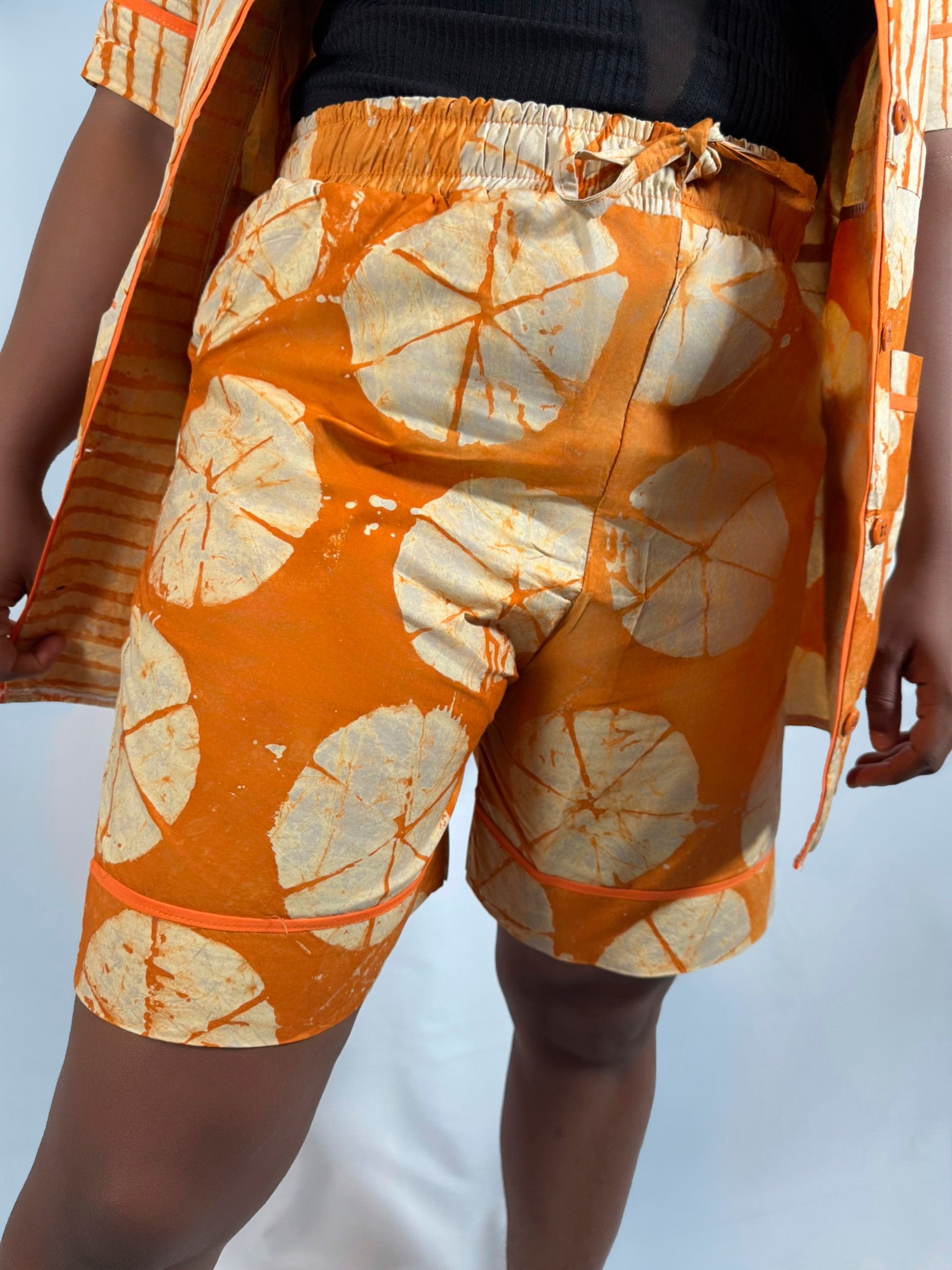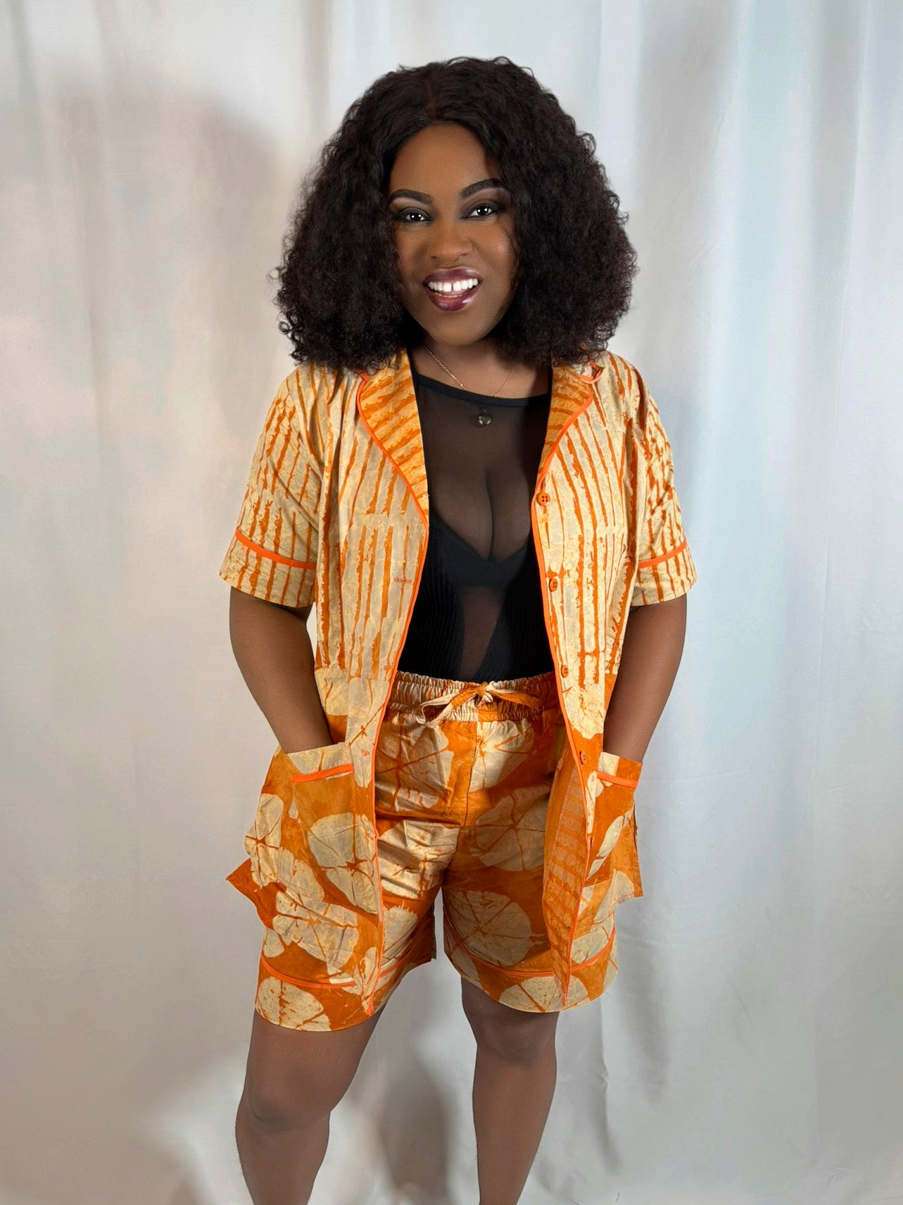 Brighten your wardrobe and express your cultural pride in style with our Adire Co-Ord Set, a bold and playful two-piece crafted from hand-dyed Nigerian Adire cotton. This set pairs a short-sleeve button-down shirt with relaxed-fit shorts, both designed for comfort, movement, and major style impact. Available in a variety of colours this look is your instant mood-booster for sunny days, creative meetups, and effortless slay.